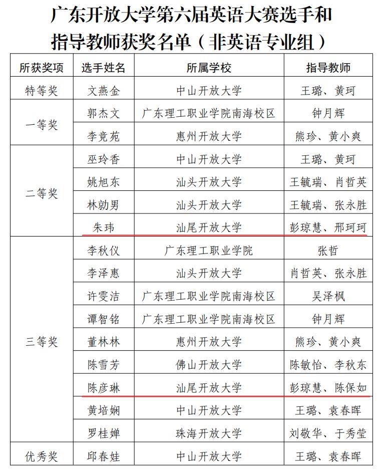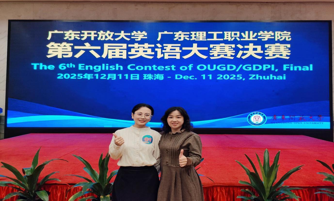 2025 年 4 月,身为三个孩子的母亲 —— 其中最小的孩子才一岁多,朱玮在班主任邢珂珂老师的反复鼓励下,更怀着为孩子们树立榜样的心愿,报名参加了广东开放大学体系第六届英语演讲大赛。从初赛时的忐忑不安,到12月11日奔赴珠海参加决赛的从容应战,这份蜕变的背后,不仅是她无数个深夜里的潜心打磨与反复练习,也离不开彭琼慧指导老师的悉心点拨、全程陪伴与温暖鼓舞。