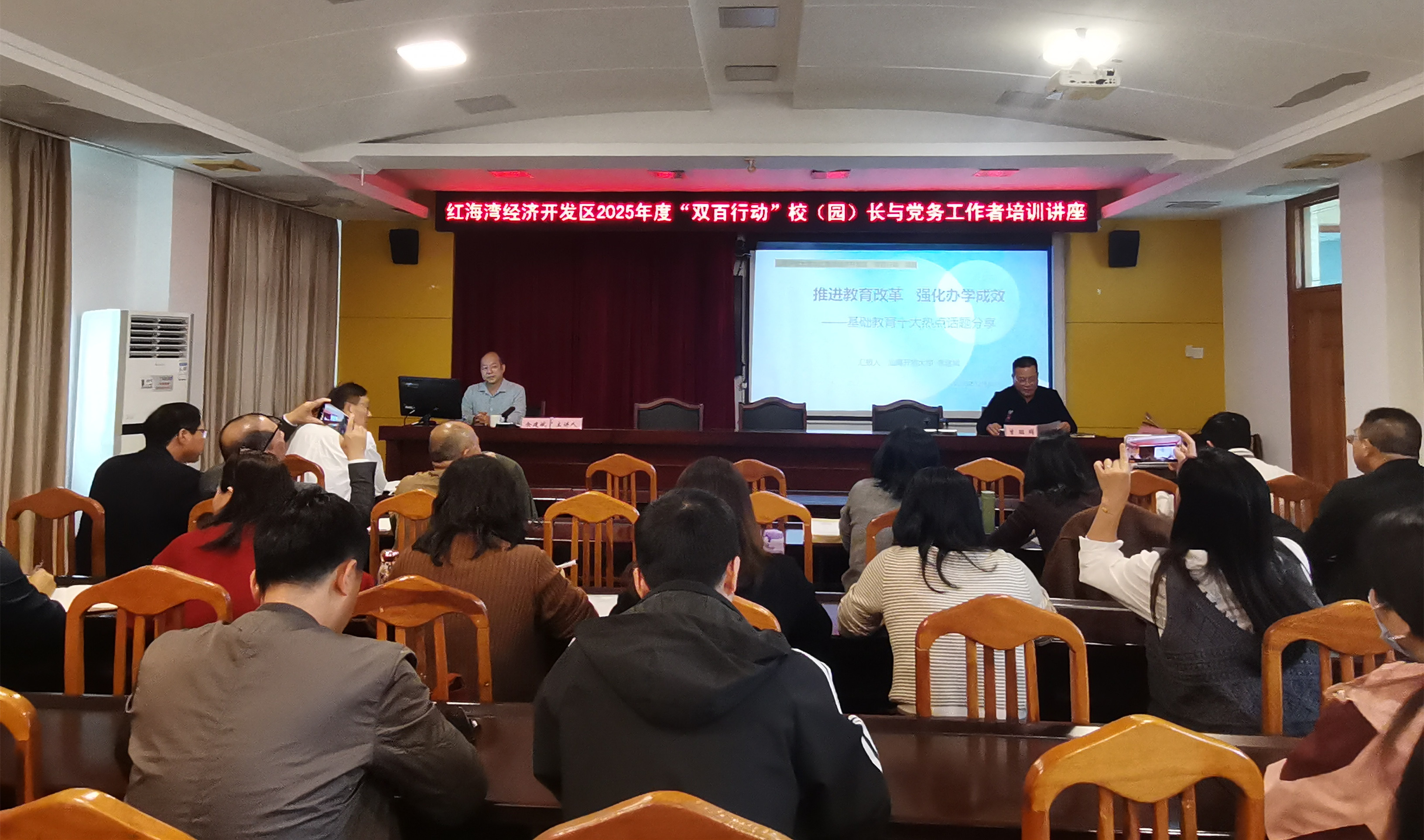 为深入贯彻“百千万工程”部署,推动“双百行动”结对共建走深走实,进一步提升红海湾经济开发区教育系统管理队伍的专业能力与党建水平,汕尾开放大学于12月10日上午在红海湾举办了2025年度“双百行动”校(园)长与党务工作者专题培训,本次培训由汕尾开放大学与红海湾经济开发区联合策划,汕尾开放大学教育学专家余建斌为本次培训授课。