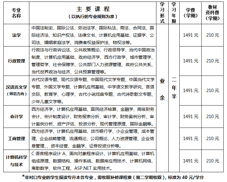国家开放大学本科招生专业及收费一览表