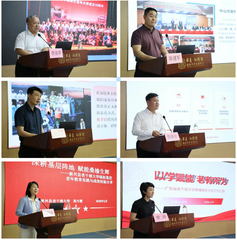 会议期间,协会教学工作委员会主任、省老干部大学副校长邱智斌作《“十五五”视野下的广东老年教育高质量发展之路》专题辅导报告。华南师范大学老年大学、中山市老干部大学等6所会员校代表,分别围绕课程体系优化、教育发展联盟建设、红色教育品牌打造、游学实践创新、基层辐射带动、教学规范化管理等主题分享了特色办学经验。