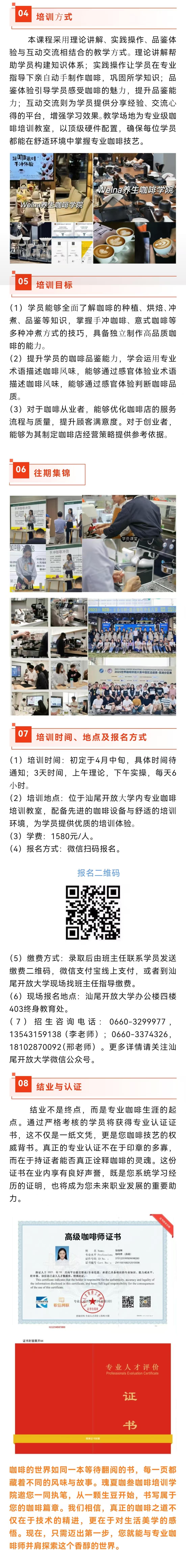 汕尾开放大学 · 瑰夏咖叁咖啡师培训招生简章