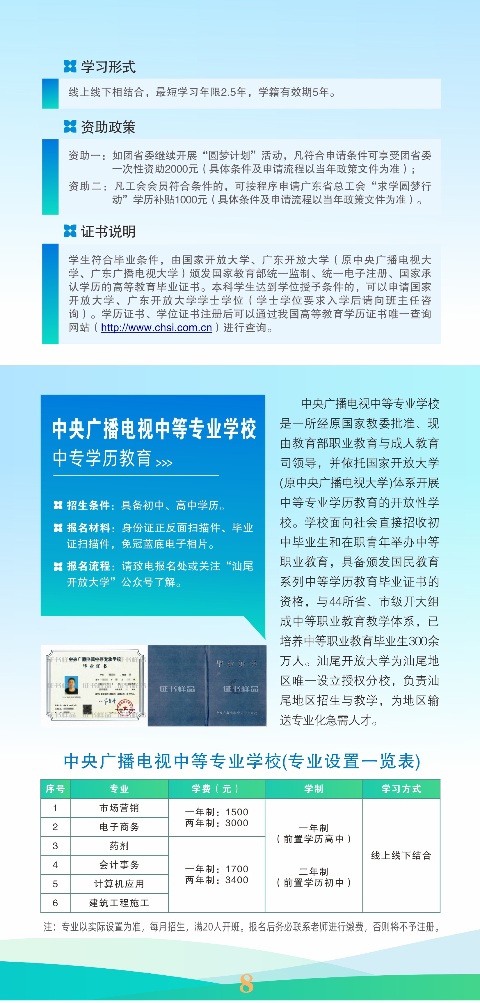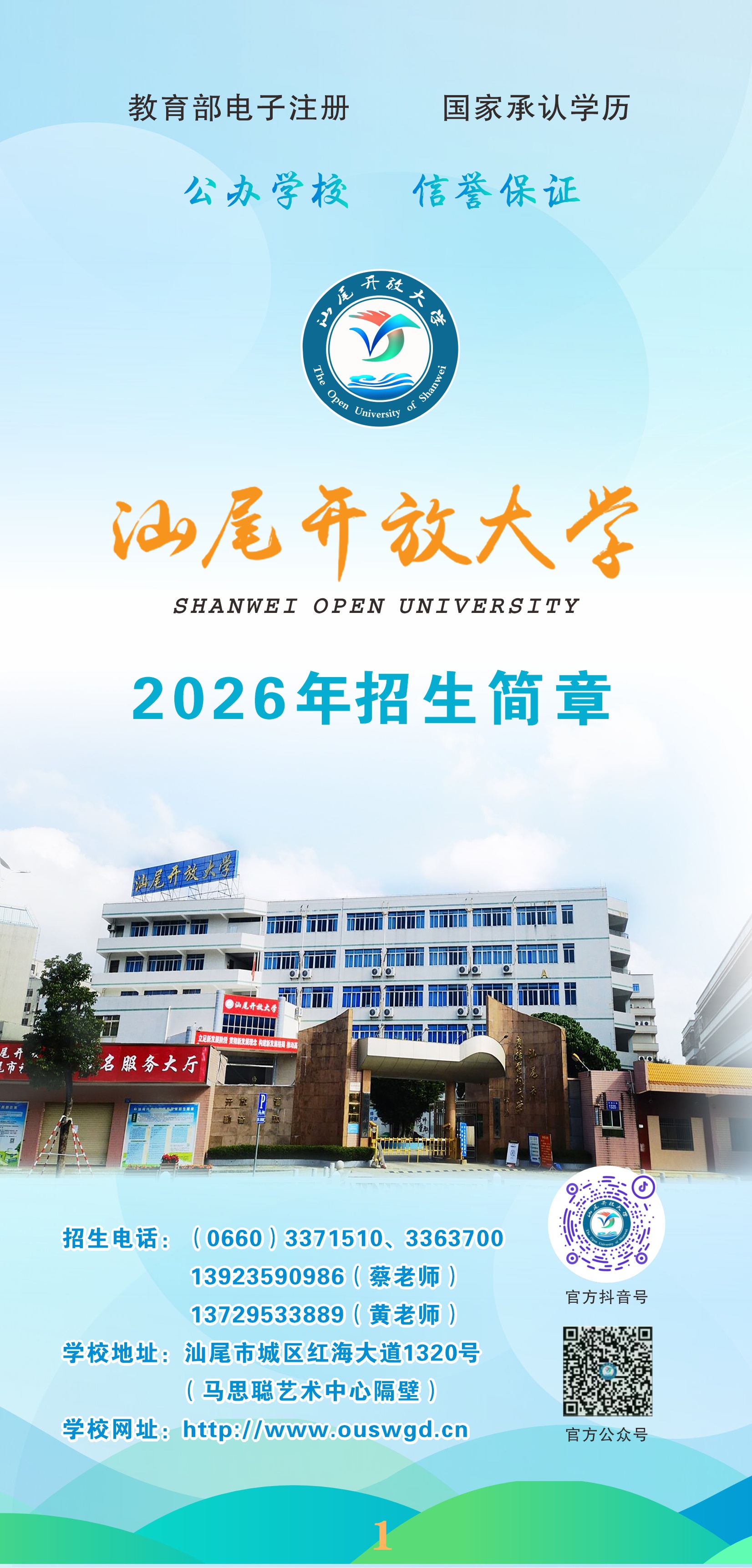 汕尾开放大学【本科、专科、中专】招生简章【常年招生】