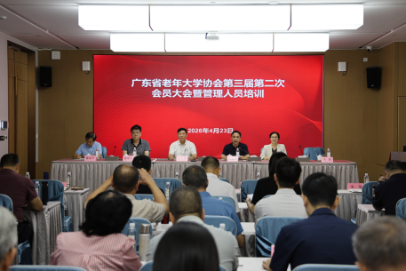 4月22日至24日,广东省老年大学协会第三届第二次会员大会暨管理人员培训在广州华夏职业学院举行。会议深入学习贯彻习近平总书记关于老龄工作和教育工作的重要论述,全面落实积极应对人口老龄化国家战略,总结协会2025年度工作成效,分析当前老年教育发展形势,交流各地各单位办学先进经验,研究部署2026年重点任务。协会会员校、内设及分支机构代表,相关院校专家学者等共132人参加会议。
